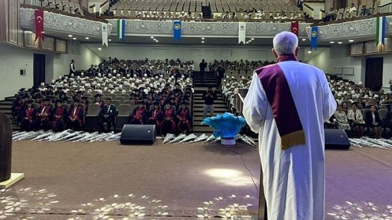 Ardından Buhara’daki Gençler Merkezi’nde İbni Sina Sağlık Hizmetleri Meslek Yüksekokulu’ndan mezun olan öğrenciler için mezuniyet töreni düzenlendi. Tören katılımcıları, mezunları kutlayarak, bundan sonraki çalışmalara başarılar diledi. Törende diplomalarını teslim alan öğrenciler, Erdöl, Teşayev ve Sağlık Hizmetleri Meslek Yüksekokulu öğretim görevlileriyle birlikte toplu fotoğraf çektirdi. Törenin ardından Özbek yetkililer Erdöl’e geleneksel Özbek kıyafeti olan "çapan" hediye etti.